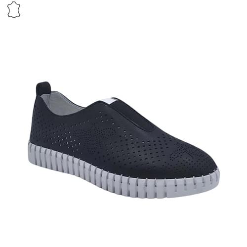 LFW-HE056-Black Leather Slip-On Shoes Womens